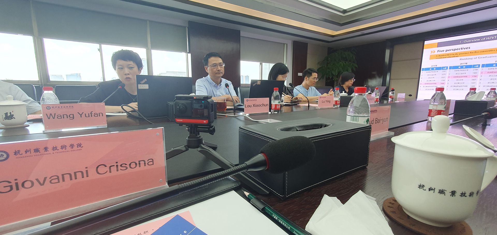 On August 19, 2023, Giovanni Crisona, Chairman of Skillman, and Torsten Kietz, Senior Advisor of Skillman, together with Cloud Bayun, Chief Advisor of UK ENIC, and other members of an European delegation, met with Lou Xiaochun, Vice President of Hangzhou Vocational & Technical College, Fu Wenjun, Deputy Secretary of the General Party Branch, Gu Lingang, Deputy Secretary of the General Party branch, Liu Yanan, Vice President, Lu Ying, Vice Director of International Exchange and Cooperation Division, and Wang Yufan, Director of International Relations (International Exchange and Cooperation Division), to discuss potential collaboration focusing, in particular, the opportunities offered by Tracks4Crafts.eu initiative.